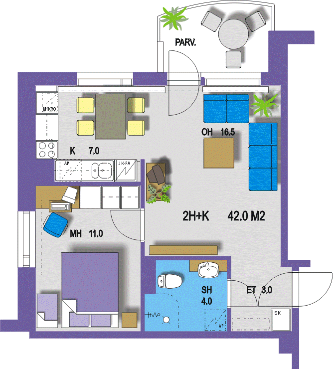 Parveke kaikissa asunnoissa