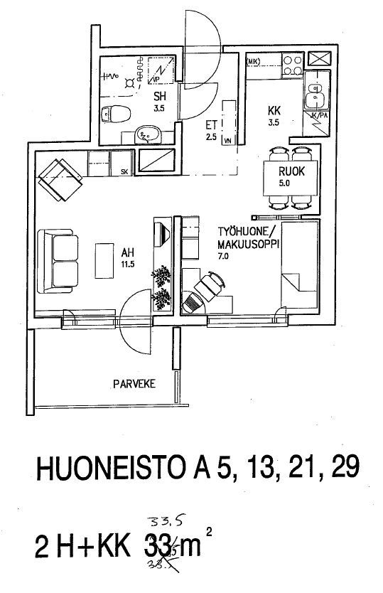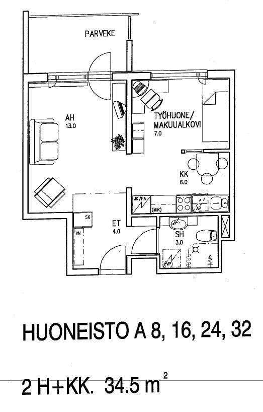 Parveke kaikissa muissa asunnoissa paitsi pohjakerroksessa