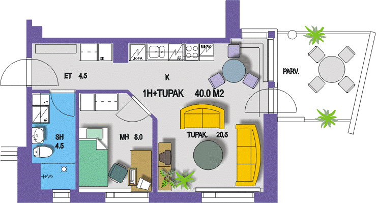 Two room apartment 1 kpl