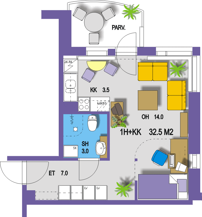 Cozy living in Rovaniemi campus area near University of Lapland. Area suits for you, who likes to be near school. Distance to city center is a around two kilometers. There is DAS internet connection in every house. There are sauna turns, laundry and drying rooms, clubroom and a small fitness room. Rooms are not furnished.