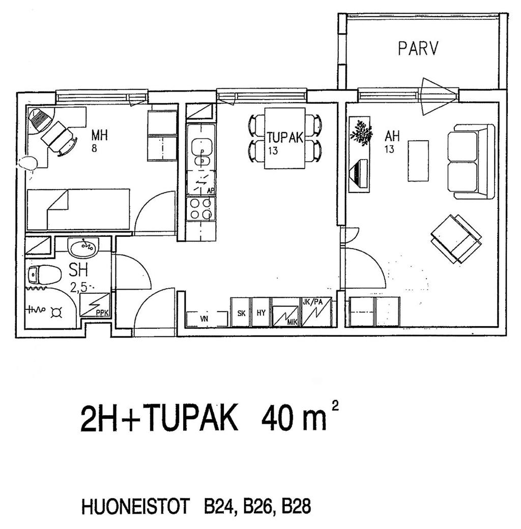 Balcony in all other apartments except in 39,5 m2 family apartments and staircase B 37 m2 studios (apartments number 25,27,29)