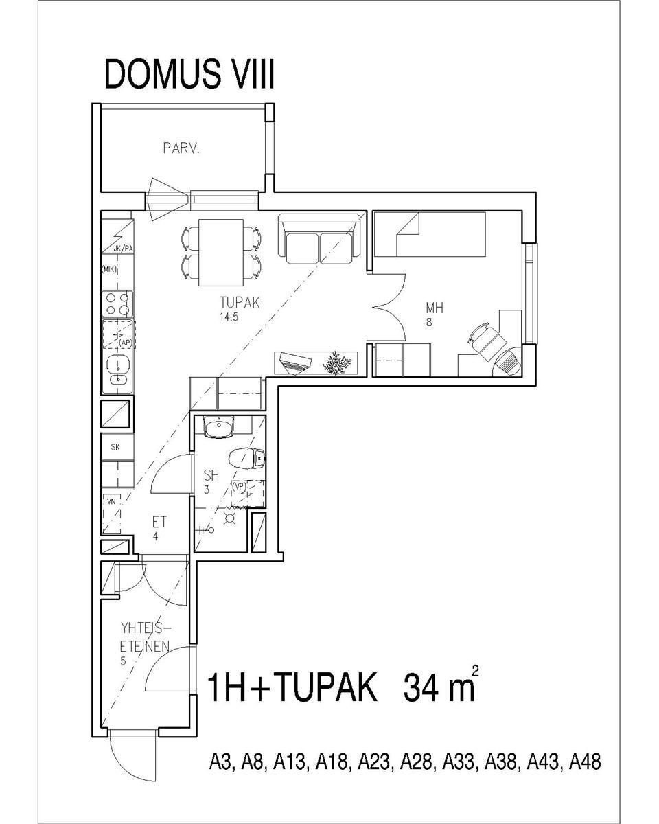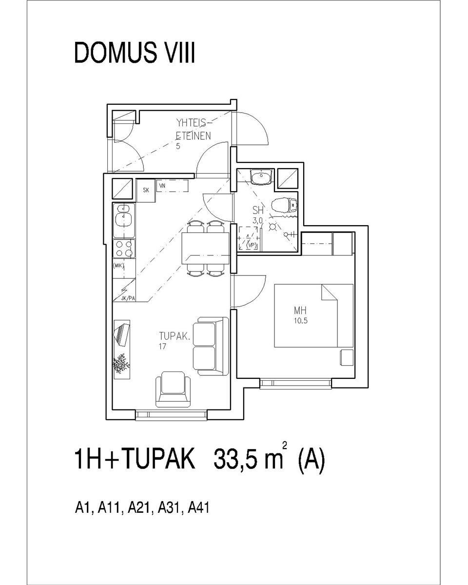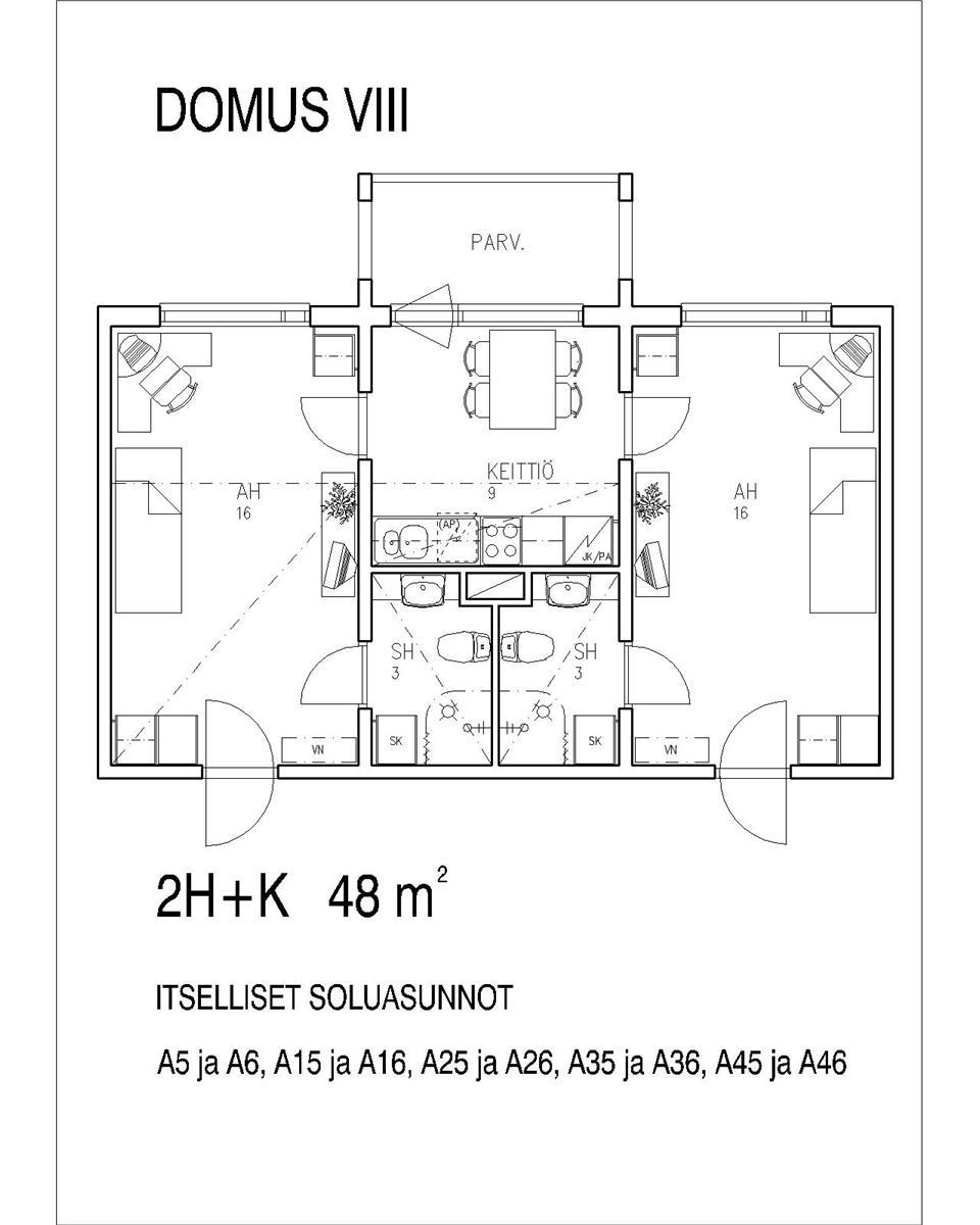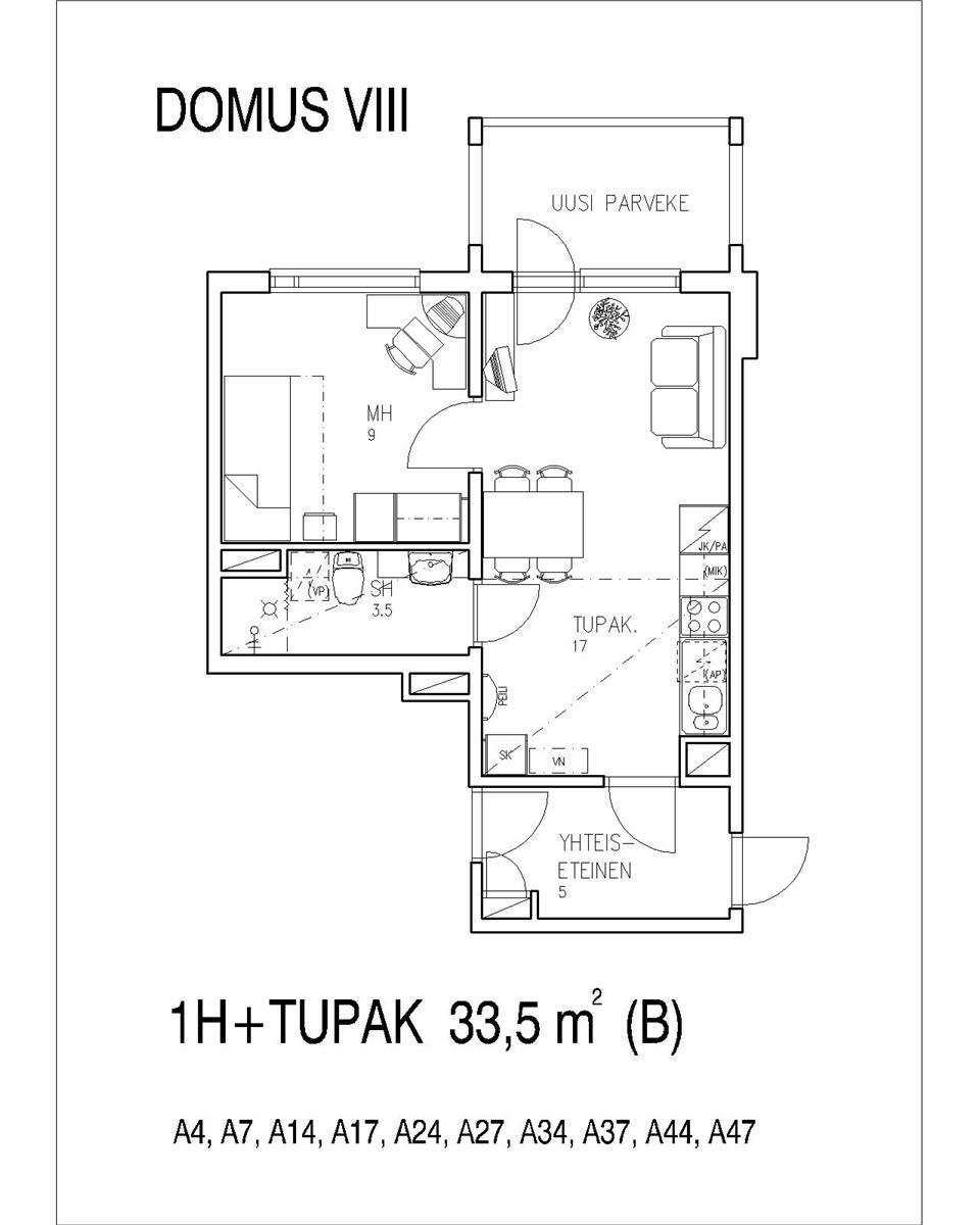 Balcony: in groundfloor only in apartments 2 and 3. In other floors in every apartment except in studios 33,5 m2 and 35,5 m2, apartment numbers 11, 20, 21, 30, 31, 40, 41 and 50