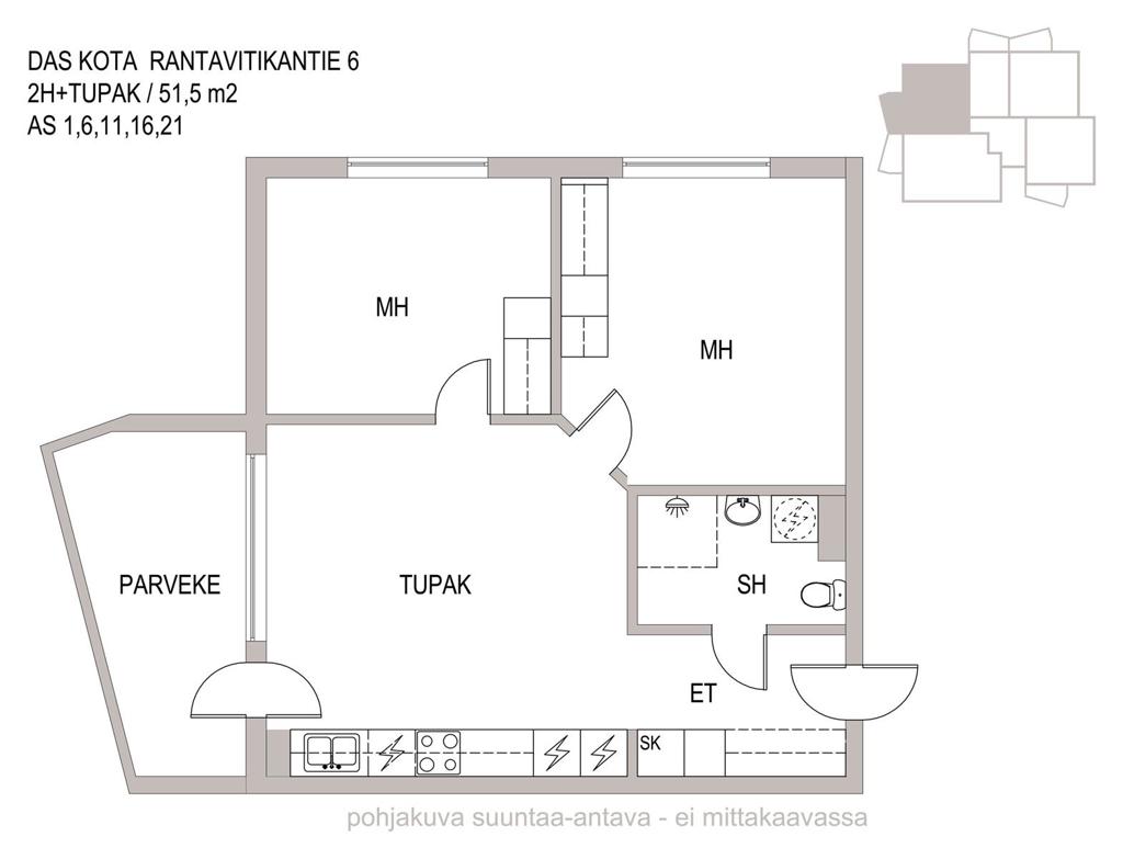 Two room apartment 1 kpl
