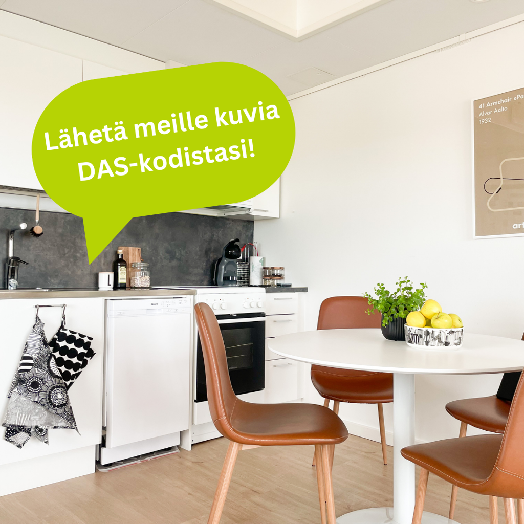 Haluaisimme jakaa DAS-koteja sosiaalisessa mediassa ja siihen tarvitsisimmekin kuvia teiltä! Kalustettuna asunnoista saa parhaimman kuvan.