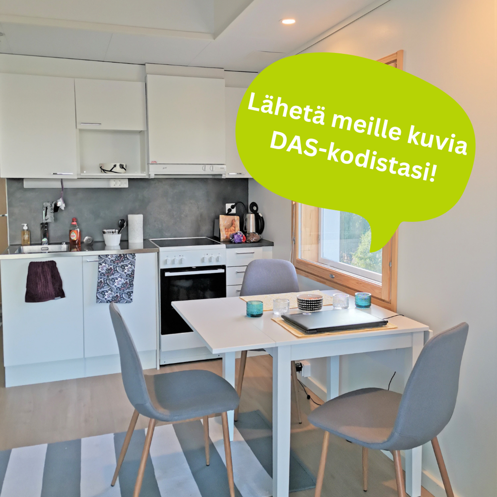Haluaisimme jakaa DAS-koteja sosiaalisessa mediassa ja siihen tarvitsisimmekin kuvia teiltä DASin asukkaat! Kalustettuna asunnoista saa parhaimman kuvan. Käytämme kuvia somejulkaisuissamme, joissa esittelemme erilaisia opiskelijakoteja kohteissamme.